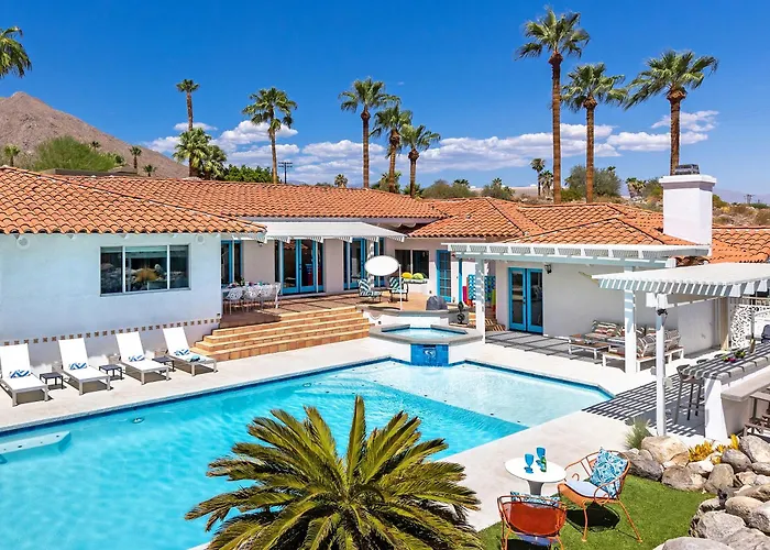 The 4-bedroom Paradise Splash At Little Tuscany By Acme House Company Palm Springs villa offers proximity to nearby tourist spots, such as the Statue of Lucille Ball, situated 3.2 km away.
